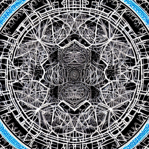 | Portrait of Sacred Geometry Fractal design, hyper-realistic, high detail, intricate, high definition, high quality, photo-realistic, 8k, hyper real, photorealistic, detailed –ar 16:9 –version 4 –s 42000 –uplight –no text, blur | Sampling Method: LMS Karras Sampling Steps: 150 This is a lovely result that is a bit different from the previous circular sacred geometry fractals. I like how it still has circles but they are incorporated into squares like a puzzle. | ![]() |