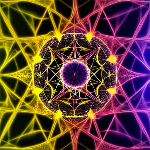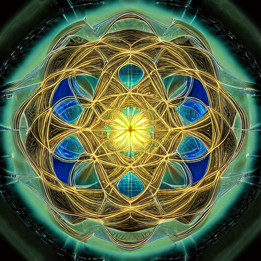 | Portrait of Sacred Geometry Fractal design, hyper-realistic, high detail, intricate, high definition, high quality, photo-realistic, 8k, hyper real, photorealistic, detailed –ar 16:9 –version 4 –s 42000 –uplight –no text, blur | Sampling Method: DPM2 a Karras Sampling Steps: 150 Watching this while it was generating reminded me of the Water Crystal Experiments that people do with Good Mind Practices. I like the colors and shapes in this output. Future experiment idea will see if this specific Sampling Method has a default for the colors in this output. | ![]() |