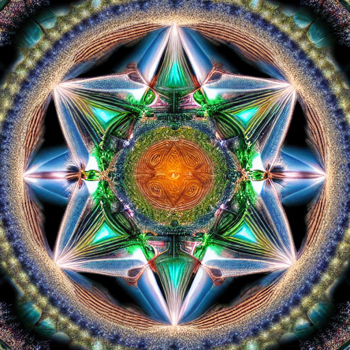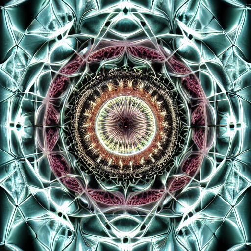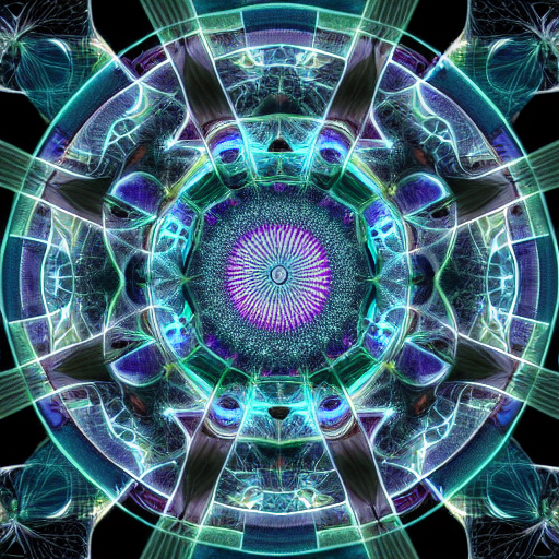 | Portrait of Sacred Geometry Fractal design, hyper-realistic, high detail, intricate, high definition, high quality, photo-realistic, 8k, hyper real, photorealistic, detailed –ar 16:9 –version 4 –s 42000 –uplight –no text, blur | Sampling Method: DPM2 a Sampling Steps: 150 I like this color combo and design alot. It reminds me of water, forest and happy skies. Its also a combo I like for many of my design projects both 2D and 3D. | ![]() |
