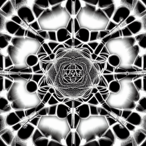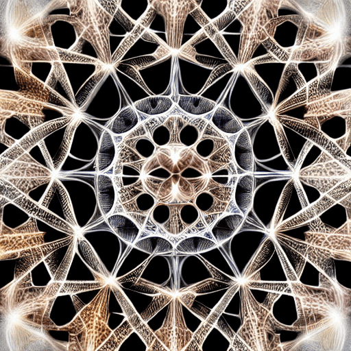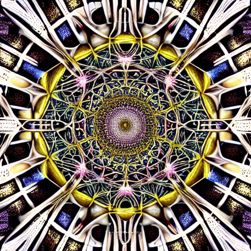 | Portrait of Sacred Geometry Fractal design, hyper-realistic, high detail, intricate, high definition, high quality, photo-realistic, 8k, hyper real, photorealistic, detailed –ar 16:9 –version 4 –s 42000 –uplight –no text, blur | Sampling Method: DPM Fast Sampling Steps: 150 This output reminds me of lacy spider webs reflecting the sun with golden threads, or a skeleton. I dunno, I do know it’s interesting. | ![]() |